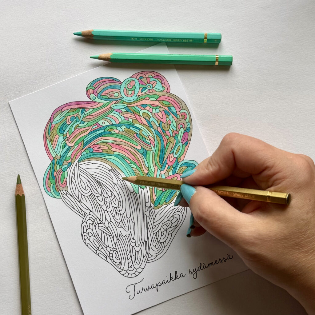 Värityskuvia, jotka kutsuvat pysähtymään ja kuuntelemaan omaa sisäistä viisautta. Mikä on kuvan viesti juuri sinulle?