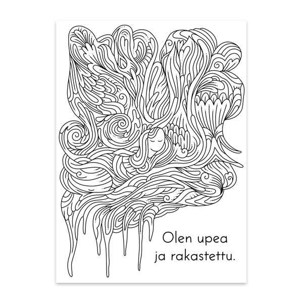 Väritä itsellesi voimaa, lempeyttä, kannustusta, mielenrauhaa, iloa… Mitä ikinä tarvitsetkaan juuri tässä hetkessä. Ei ole oikeaa tai väärää tapaa värittää Tietoisuuden Värityskuvia, käytä intuitioa ja sisäistä tunnetta apunasi värien valinnassa. Värittämisprosessi menee juuri niin kuin on tarkoitus. Kortteihin on lisäksi kirjoitettu pieni viesti, jonka tulkitset itsellesi sopivalla tavalla. Värityskuvat sopivat aikuisille ja lapsille.